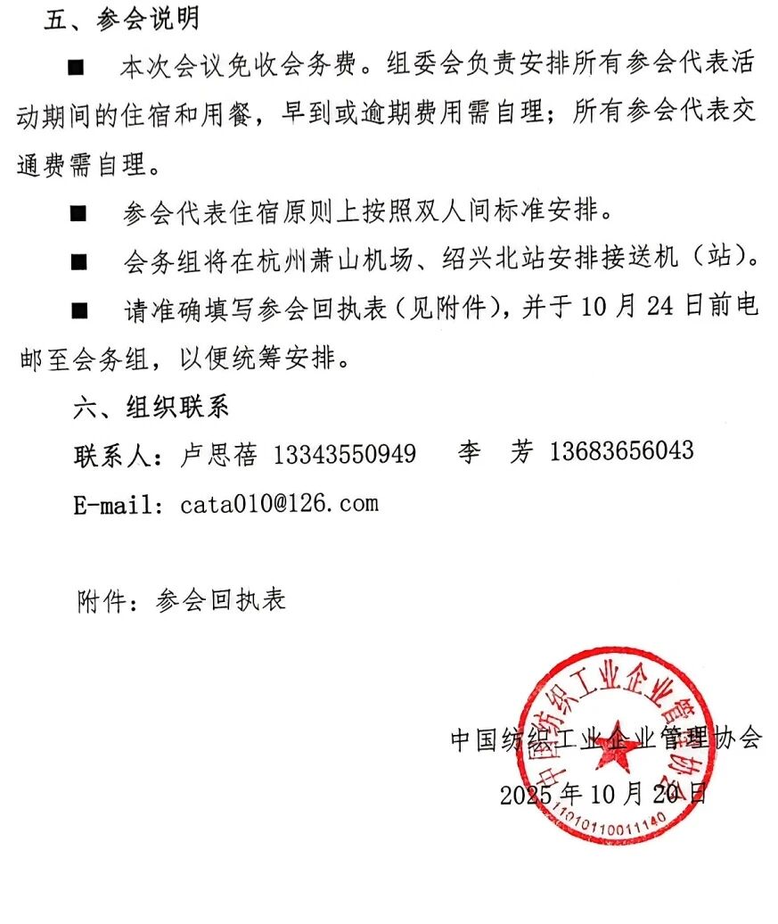 为深入贯彻国家关于推动数字技术与实体经济深度融合的战略部署,助力构建国内国际双循环相互促进的新发展格局。中国纺织工业企业管理协会定于11月6日-8日,在浙江省绍兴市柯桥区举办2025中国纺织市场大会。