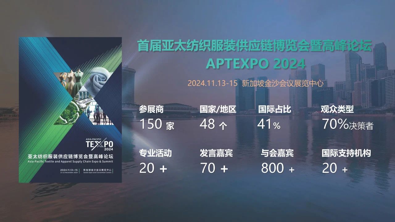 作为落地新加坡金沙会展中心的旗舰平台,APTEXPO立足亚太、辐射全球,已发展成为集供应链解决方案展示、行业领袖高峰论坛、跨境投资匹配、产业创新发布及高端国际对话于一体的全球产业战略枢纽。每年吸引来自40+国家的5000余位行业影响力嘉宾,汇聚Inditex、H&M、迅销集团等全球产业链决策者,持续推动亚太纺织服装产业向价值链高端攀升。